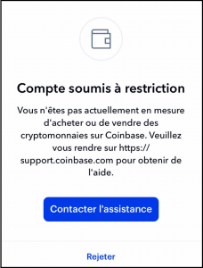L’échange Coinbase bloque les comptes de Utilisateurs français depuis mercredi 16 décembre. En outre, pas d’avis n’a pas été communiqué. Les utilisateurs concernés ne peuvent plus achat , vendre ou supprimer leurs crypto-monnaies.